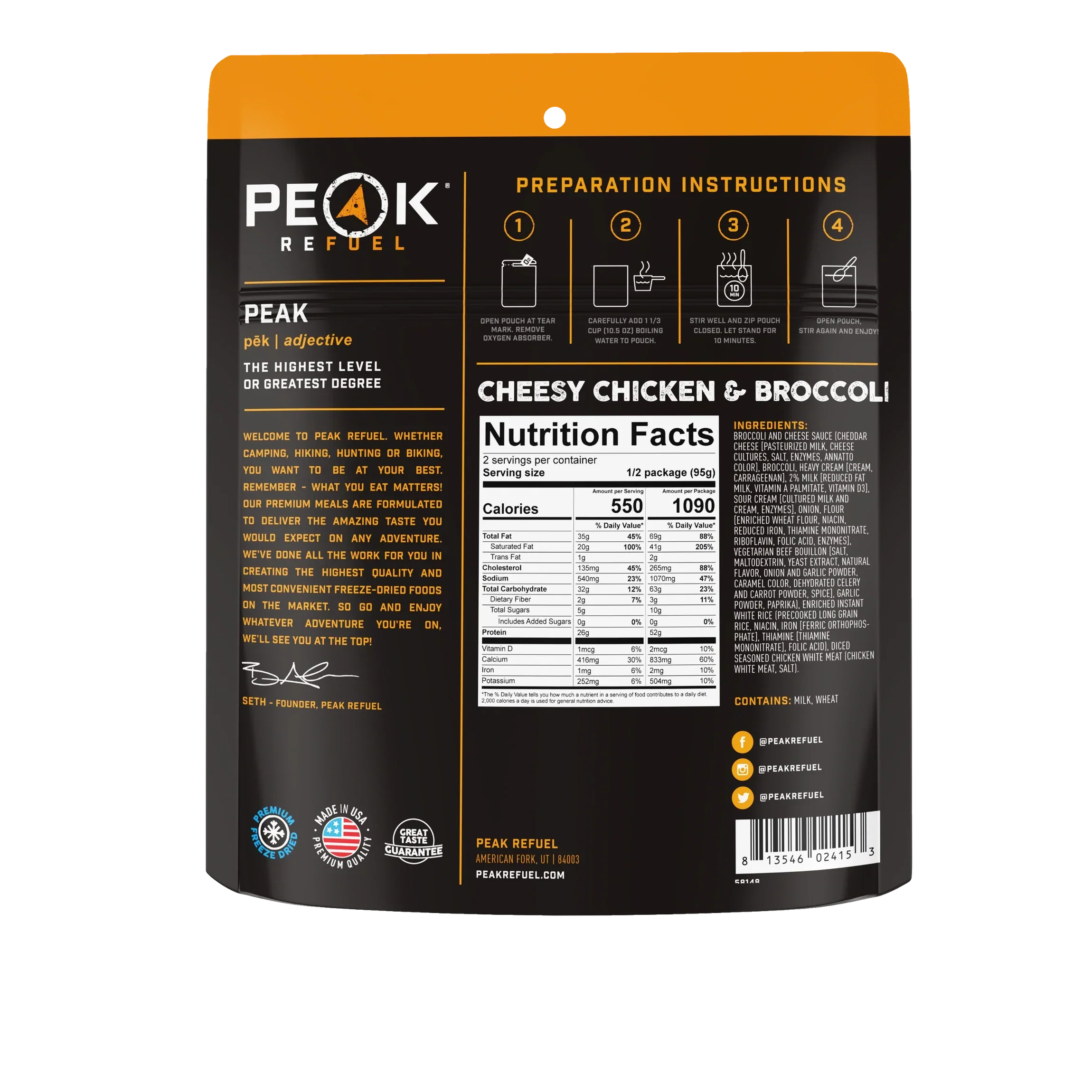 -We understand that time on the trail is valuable. That’s why most Peak Refuel meals are ready to eat in 10 mins or less.